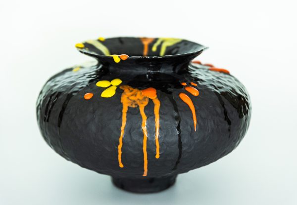 Be the first to review “Black Medium Sized Vase With Yellow Orange Drip” Cancel reply